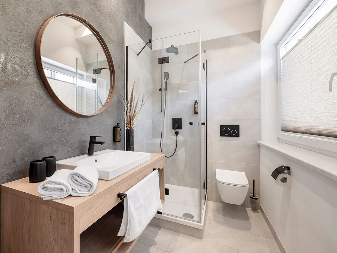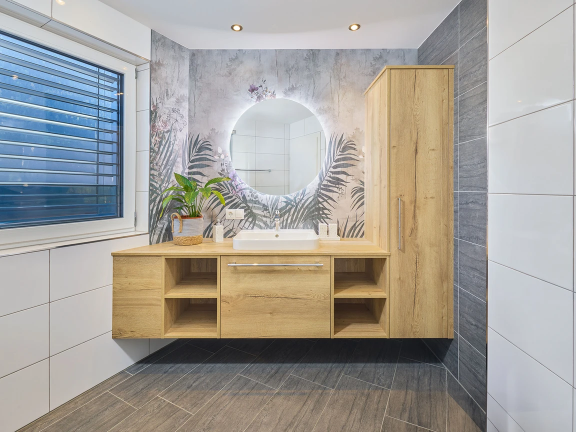 Meisterlich gefertigte Holzmöbel lassen jedes Badezimmer angenehm und geordnet erscheinen.